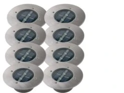 Ranex Solar LED Bodeneinbaustrahler 8er SET Für Außen, Edelstahl Rund Ø14cm IP67
