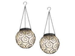 MeineWunschleuchte LED Außenlaternen Hängeleuchten 2er SET, Solarkugeln Klar, Ø 14,5cm