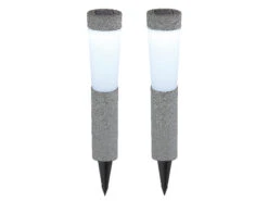 Globo Solarleuchten 2er Set Erdspießleuchten, Steinoptik Grau, H.45,5cm