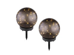 MeineWunschleuchte LED Solarkugeln 2er SET – Kugeln Rauchfarbig Ø 20cm Mit Erdspieß, Glas