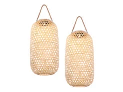 MeineWunschleuchte LED Solarlaternen 2er SET Hängend Aus Bambus Korbgeflecht Höhe 56,5cm