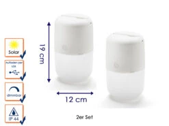 Konstsmide 2er Set Solar LED Leuchte ASSISI Mit 3-Stufen Dimmer & USB-Kabel, IP44, Weiß