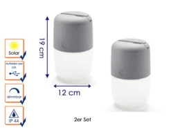 Konstsmide 2er Set Solar LED Leuchte ASSISI Mit 3-Stufen Dimmer & USB-Kabel, IP44, Grau