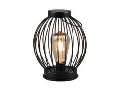 Reality Leuchten Solar LED Tischleuchte ROCA Schwarz Mit Lampenschirm In Rattanoptik, Höhe 32cm