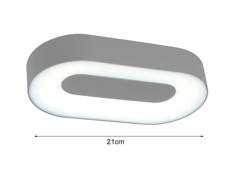 Mit einer Breite von 21cm, einer Höhe von 4,5cm und einer Ausladung von 11cm ist die ovale Fassadenleuchte auch bei der Gartengestaltung sehr gut als dekorative Wegeleuchte geeignet. Ihre gleichmĂ€Ăige Ausleuchtung sorgt fĂŒr schönen Lichteffekte an Ihrer Hauswand.