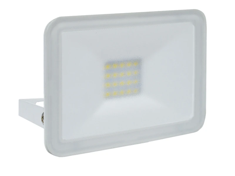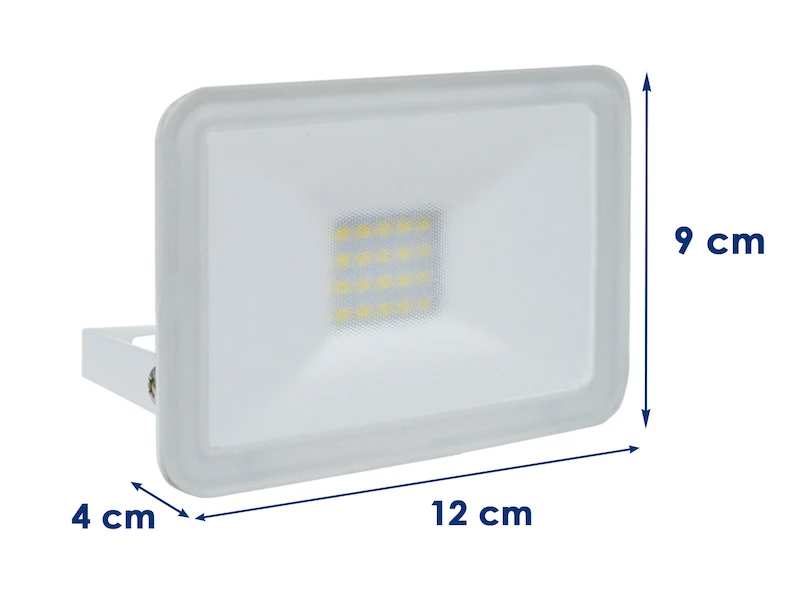Gefertigt ist der Strahler aus robustem, weißem Metall mit einem 4mm dicken Sicherheitsglas. Mit seinem schlanken Design nimmt er auch in einer beengten Arbeitsecke oder in schmalen Nischen wenig Platz ein. Der LED Scheinwerfer überzeugt mit einer starken Leistung von 10 Watt und 900 Lumen in Kaltweiß.