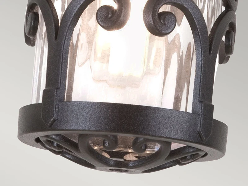 Gefertigt aus wetterfestem Aluminium ist sie ein schöner Eyecatcher im Garten oder auf dem Grundstück und beleuchtet zuverlässig Balkone, Terrassen und Eingangsbereiche. Der Lampenschirm aus Klarglas und die verschnörkelten Metallelemente verleihen der robusten Außenleuchte den typischen Laternenlook im englischen Landhausstil.