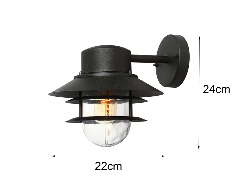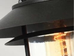 Gefertigt ist die hängende Außenlaterne aus Edelstahl 304 in schwarz, welches zusätzlich pulverbeschichtet wurde, um der Leuchte zusätzliche Haltbarkeit zu verleihen. Somit ist sie robust genug um rauen Umgebungsbedingungen standzuhalten, und eignet sich daher hervorragend für den Einsatz in Küstengebieten. Der Lampenschirm besteht aus klarem Glas.