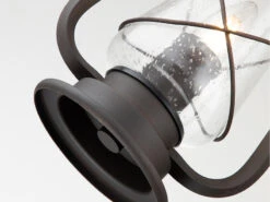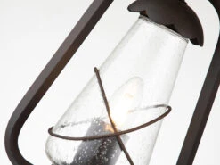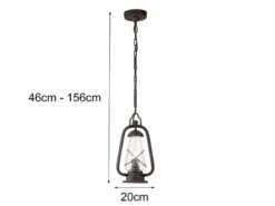 Die Outdoor Pendelleuchte im rustikalen Stil, die an eine alte Bergmannslampe erinnert, besteht aus Stahl in Bronze Antik und einem schützenden Glaszylinder aus Strukturglas. Dies verleiht ihr den typischen alten Sturmlaternen Look. Mit ihrer widerstandsfähigen Konstruktion trotzt sie Wind und Wetter und spendet zuverlässig Licht.