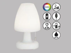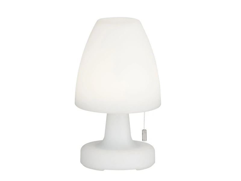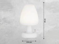 Diese Tischleuchte ist ein echter Alleskönner. Dank der Schutzart IP 44 ist sie wetterfest und kann auf der Terrasse, dem Balkon oder beim Camping und Picknick verwendet werden. Und auch im Innenbereich macht die robuste Tischlampe aus weißem Kunststoff eine gute Figur, z.B. als Nachttischlampe oder kleine Lampe auf der Fensterbank.