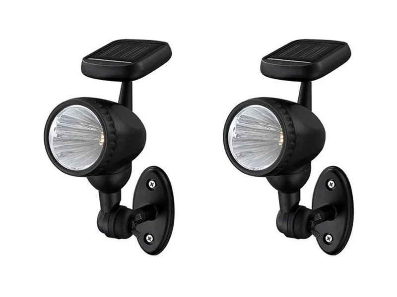 Mit ihrem unvergänglichen Design aus robustem, schwarzem Kunststoff passen sich diese schwenkbaren Solarlampen aus dem Hause Globo Lighting ihrer Umgebung perfekt an und spenden ein angenehm weißes LED Licht.