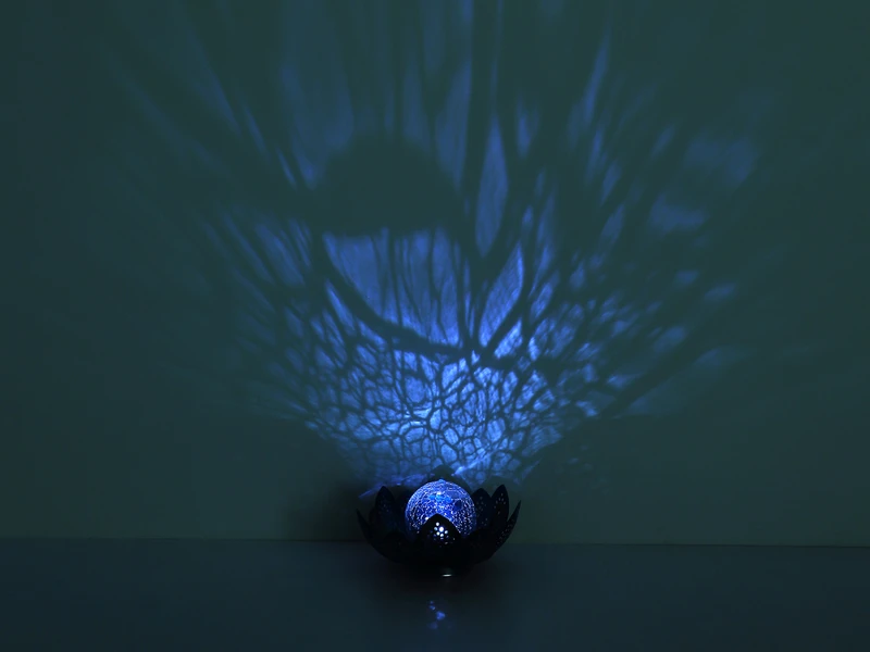 Diese Solarleuchte in Form einer Seerose ist mit einer blauen Glaskugel in Bruchoptik versehen, welche in 6.500 Kelvin tageslichtweiß leuchtet. Sie hat einen Durchmesser von 25cm, besteht aus Metall mit einer Dekorstanzung in Silber-Blau und ist ein schönes Dekorationselement für Ihren Outdoor Bereich. An der Unterseite der Leuchte befindet sich ein Schiebeschalter zum Ein- und Ausschalten.
