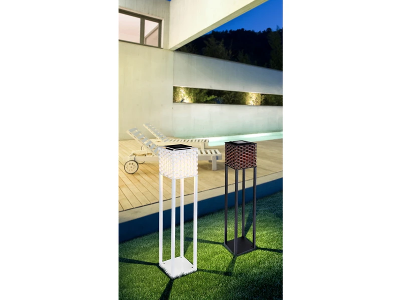 Diese quaderförmige Außenstehlampe zieht schon im Hellen alle Blicke auf sich. Doch bei Dunkelheit kommt das absolute Highlight zum Vorschein: Der Korbgeflecht Lampenschirm sorgt für glanzvolle Lichtspiele und stimmungsvolle Außenbeleuchtung.