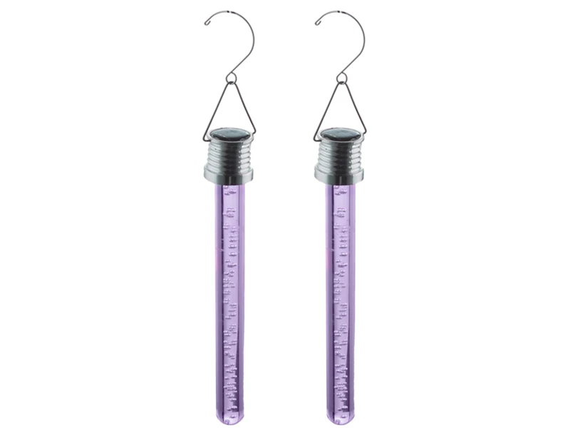 Die Solarlampen zum Aufhängen sind aus wetterbeständigem Edelstahl gefertigt und haben einen Durchmesser von 3.5 cm und ist etwa 23 cm hoch. Des Weiteren sind die Wegeleuchten jeweils mit einem fest verbauten 0,06 Watt RGB LED Modul ausgestattet, welches eine besonders hohe Lebensdauer hat.