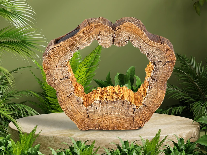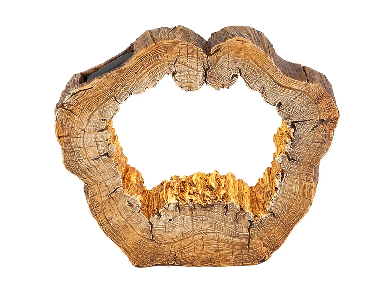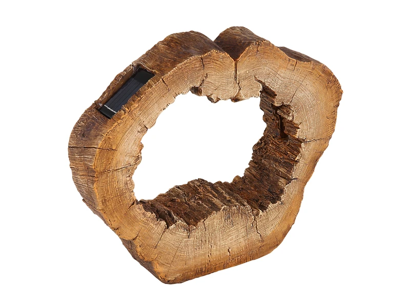 Man könnte fast meinen es sei ein Kunstwerk, diese Solarlampe wirkt durch ihr ausgefallenes Baumstamm Design aus braunem Kunststoff in Holzoptik sehr elegant und edel.