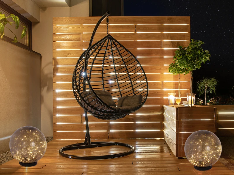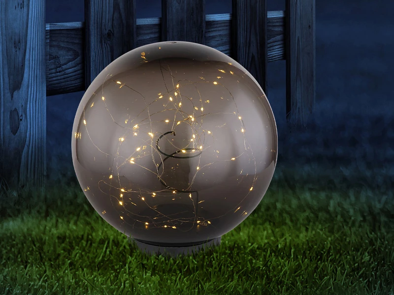 Diese ausgefallene Solarkugel sorgt mit den vielen kleinen Lämpchen und dem rauchfarbigen Kugelschirm für faszinierende Lichtstpiele in Ihrem Außenbereich.