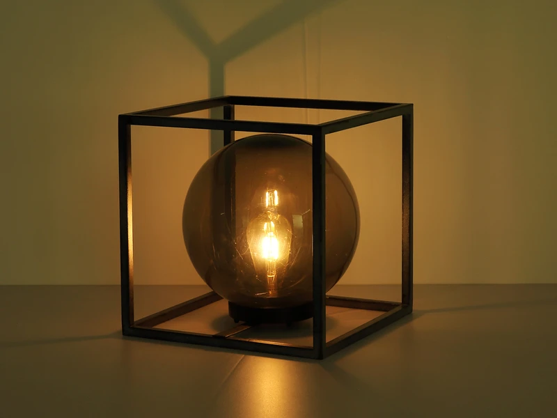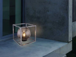 Diese Solarleuchte sorgt mit dem ausgefallenen Würfel-Design aus schwarzem Metall und rauchfarbigen Kugelschirm für faszinierende Lichtstpiele in Ihrem Außenbereich.