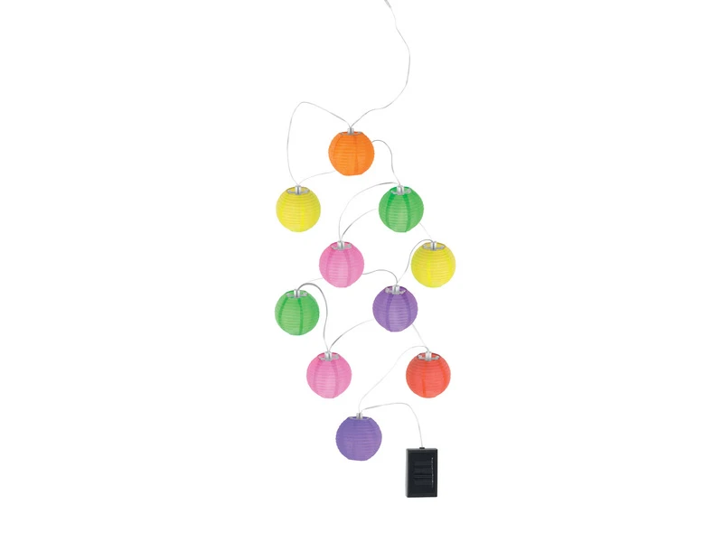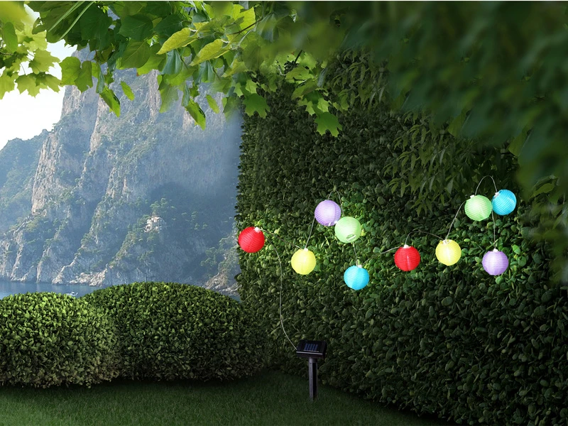 Diese dekorative Solarlichterkette mit bunten Lampions aus Kunststoff hat eine GesamtlÀnge von 3 Metern und ist mit 10 kugelförmigen Lichtquellen ausgestattet, welche einen schönen Lichteffekt auf der Terrasse oder dem Balkon zaubern.