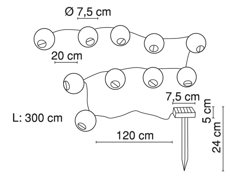 Die Lichtergirlande wird ĂŒber ein separates angebrachtes Solarpanel tagsĂŒber aufgeladen. Bei anbrechender Dunkelheit gibt sie ihr gespeichertes Licht wieder ab. Die 10 Lichtquellen haben eine Leistung von jeweils 0,06 Watt. Der inkludierte AA NiMh Akku ist austauschbar.