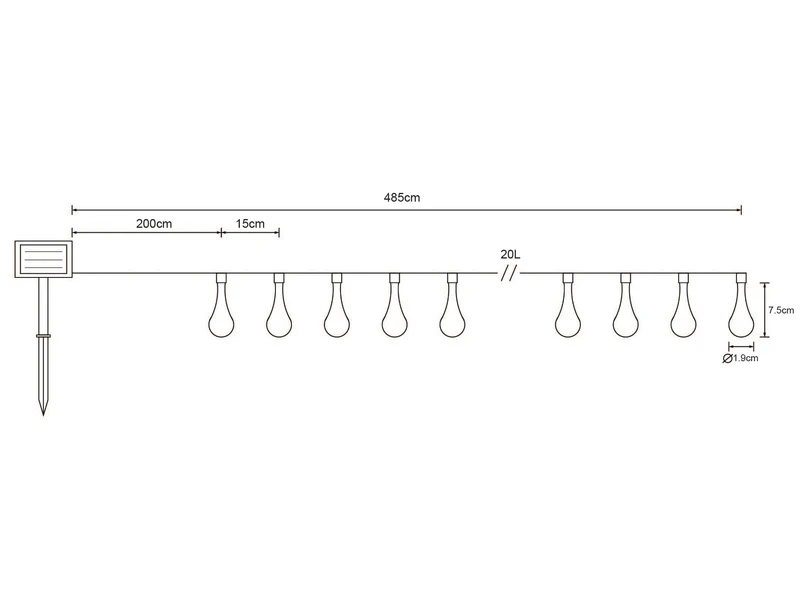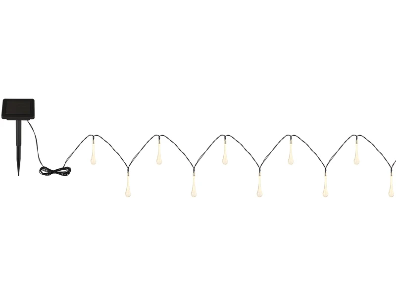 Die Lichterkette wird ĂŒber ein separates angebrachtes Solarpanel tagsĂŒber aufgeladen. Bei anbrechender Dunkelheit gibt sie ihr gespeichertes Licht wieder ab. Die 20 Lichtquellen haben eine Leistung von jeweils 0,06 Watt und 2.700 Kelvin warmweiĂ. Der inkludierte AA NiMh Akku ist austauschbar.