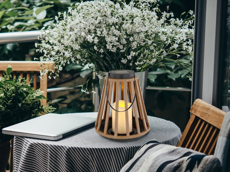 Die Außenlaterne wird von einem effizienten Solarpanel betrieben, das während des Tages Sonnenenergie sammelt und sie in Strom umwandelt, der die LED-Kerze im Inneren der Laterne zum flackern bringt. Sobald die Sonne untergeht, wird die Laterne automatisch eingeschaltet und sorgt bis zu sechs Stunden lang für eine richtige Wohlfühlatmosphäre.
