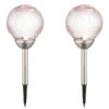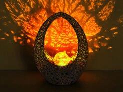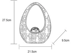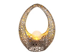 Diese Solarleuchte ist ein echtes Dekoelement für Ihren Außenbereich. Die 27,5cm hohe ovale Skulptur aus Metall in Bronzefarben und Gold ist mit schönen Dekorstanzungen und einer Glaskugel in Bruchoptik versehen. Die Solarkugel ist mit einem LED-Leuchtmittel ausgestattet, welches ein 3000 Kelvin warmweißes Licht ausstrahlt und somit für faszinierende Lichtspiele und eine stimmungsvolle Atmosphäre sorgt.