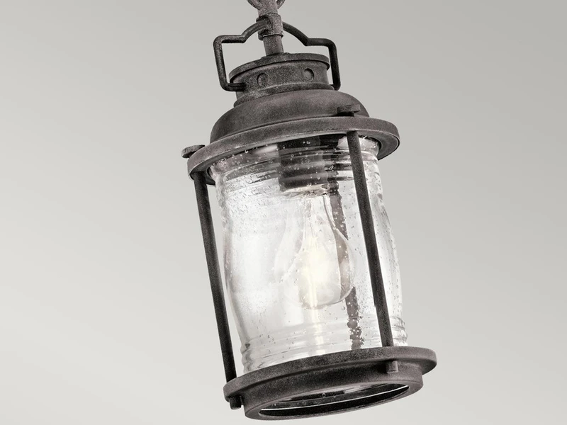 KICHLER Kleine Industrial Pendelleuchte ASHLAND BAY Für Innen & Außen, Anthrazit Ø15cm