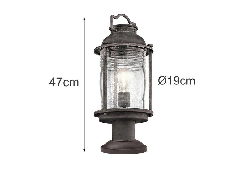 Gefertigt aus wetterfestem Stahl ist sie ein schöner Eyecatcher im Garten oder auf dem Grundstück und beleuchtet zuverlässig Gartenwege, Terrassen und Eingangsbereiche. Der Lampenschirm aus strukturiertem Glas und der Korpus in Anthrazit verleihen der robusten Außenleuchte den typischen Laternenlook im rustikalen Industriedesign.