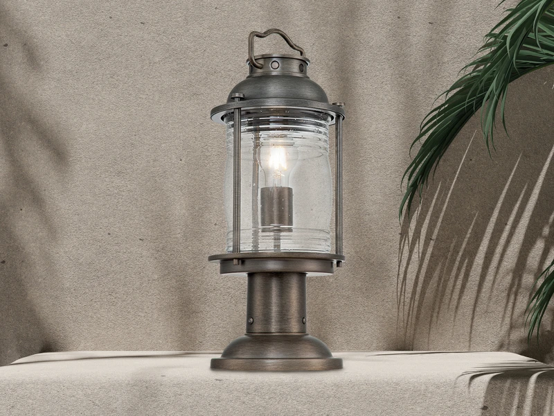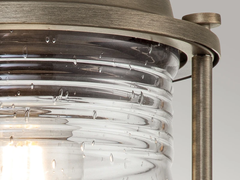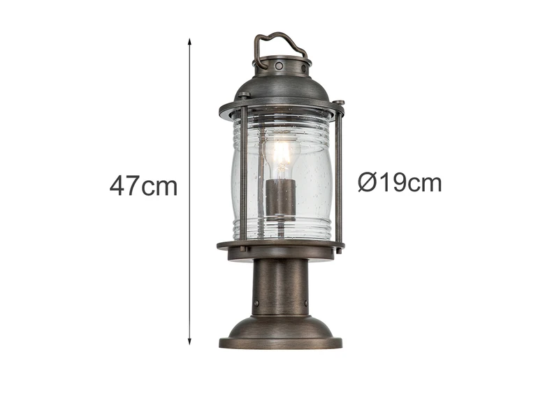 Gefertigt aus wetterfestem Aluminium ist sie ein schöner Eyecatcher im Garten oder auf dem Grundstück und beleuchtet zuverlässig Gartenwege, Terrassen und Eingangsbereiche. Der Lampenschirm aus strukturiertem Glas und der Korpus in Bronze verleihen der robusten Außenleuchte den typischen Laternenlook im rustikalen Industriedesign.
