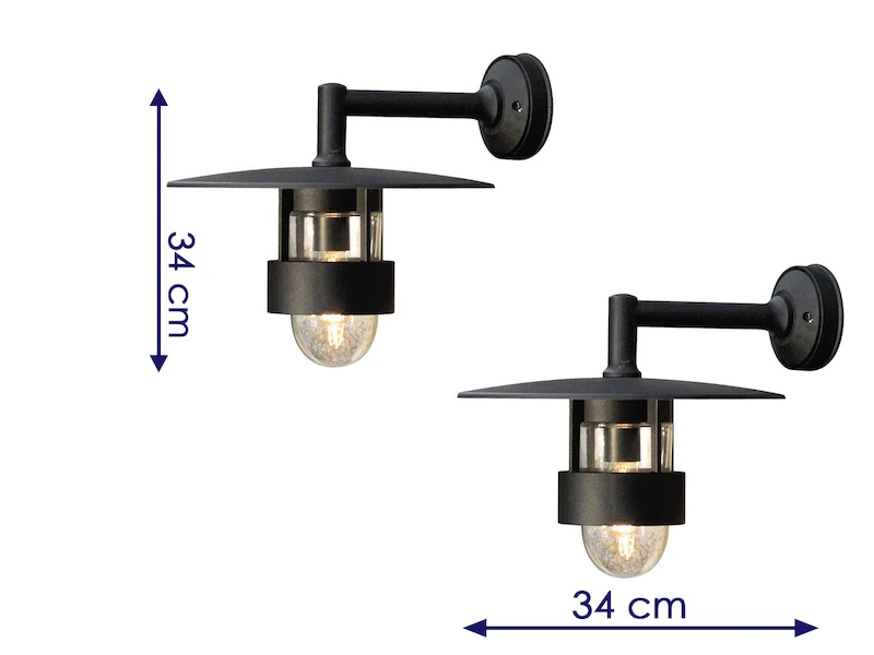 Mit einer Schutzart von IP23 können diese Außenwandleuchten in fast jedem Outdoor Bereich eingesetzt werden, da sie durch ein Ablaufloch für Kondensat- und Regenwasser auch gegen Sprühwasser gut gewappnet sind. Daher haben viele Außenleuchten, bei denen Gläser und Scheiben lose ohne Dichtung montiert werden, diese Schutzklasse. Die Wandleuchten eignen sich daher ideal zur Außenbeleuchtung für Ihren Eingangsbereich, zur Fassadenbeleuchtung oder zur Terrassenbeleuchtung.