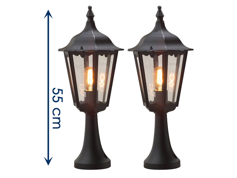 Diese Sockelleuchten sind mit einer Höhe von ca. 55 cm und einem Durchmesser von ca. 23 cm ideal für den Eingangsbereich, die Einfahrt, an Treppen oder für die Terrasse und bieten eine optimale Ausleuchtung.