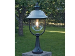 Der Sockel-Durchmesser beträgt ca. 13 cm und Dank IP43 ist die Leuchte Spritzwasser geschützt.