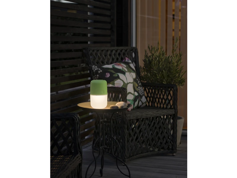 Allein im Hellen sind die Solarlampen mit ihrem grünem Kunststoffgehäuse und dem opalen Acrylglas schon ein toller Blickfang. Da die Leuchten ohne Kabel auskommt, können Sie diese Gartenlampe als Tischleuchte auf der Terrasse und im Garten nutzen oder sie aufhängen um besondere Lichtpunkte zu schaffen. Als besonderes Highlight lässt sich die Solarlampe in drei Stufen dimmen. So können Sie zwischen einer guten Ausleuchtung z.B. beim Essen, bis hin zu einem dezenten Orientierungslicht wählen.