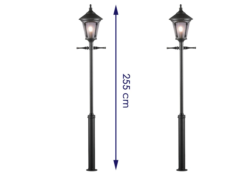 Mit einer Höhe von jeweils 255 cm sind die Außenstandleuchten auch bei der Gartengestaltung sehr gut als dekorative Gartenlaternen oder Wegeleuchten (z.B. in Parkanlagen) geeignet. Durch die rundum Lichtverteilung nach allen Seiten können Sie dabei den gewünschten Außenbereich optimal ausleuchten und erhalten einen schönen Lichteffekt.