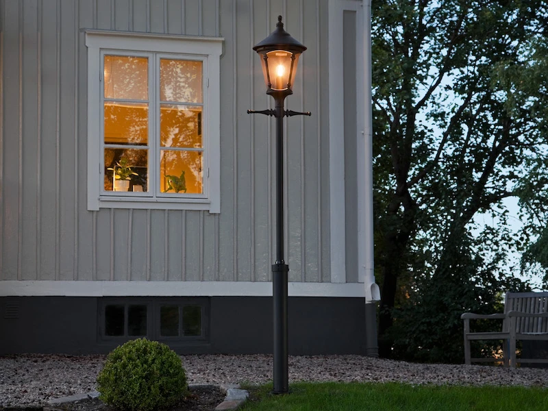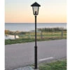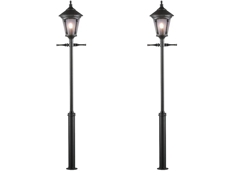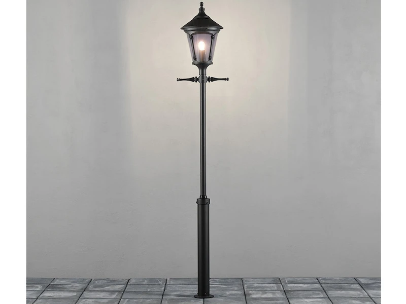 Gefertigt sind die Mastleuchten, die an nostalgische Straßenlaternen erinnern, aus schwarzem Aluminium und rauchfarbenem Acrylglas. Je nach Leuchtmittel sorgen die Kandelaber für eine schöne Gartenbeleuchtung oder Straßenbeleuchtung.