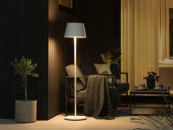 Mit ihrem praktischen USB-Anschluss und dem wiederaufladbaren Akku ist diese Stehleuchte aus weißem Aluminium äußerst flexibel und unabhängig von Stromquellen. Laden Sie sie einfach über das mitgelieferte Kabel auf und genießen Sie stundenlanges Licht ohne störende Kabel. Sie brauchen keine Steckdosen in der Nähe und haben die Freiheit, Ihren Lieblingsplatz im Freien zu beleuchten, wie Sie es möchten.