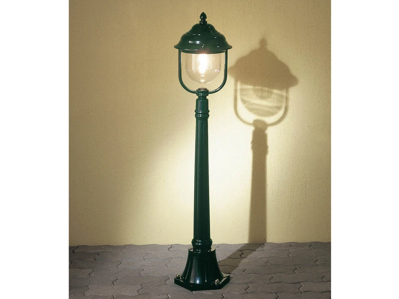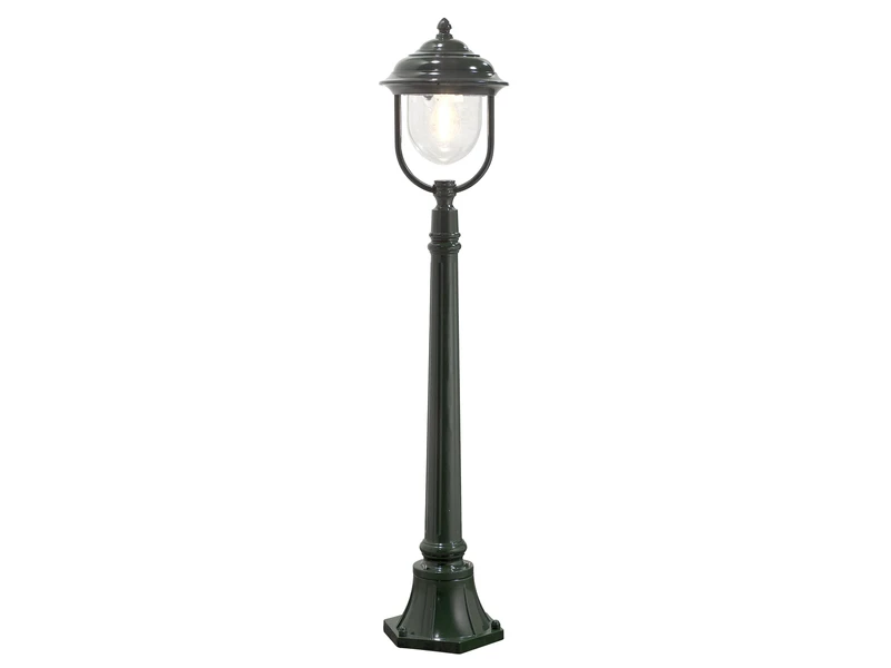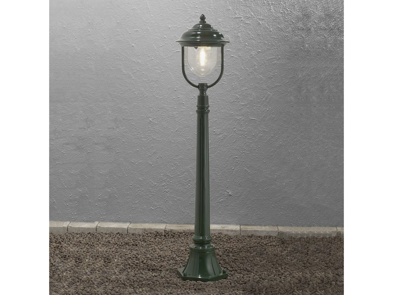 Die Außenleuchte im Landhausstil hat eine Höhe von 118cm und bietet als Terrassenbeleuchtung, Gartenleuchte oder im Eingangsbereich eine optimale Ausleuchtung. Der Durchmesser beträgt 24cm.
