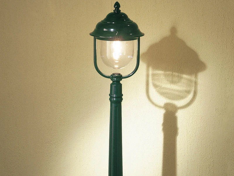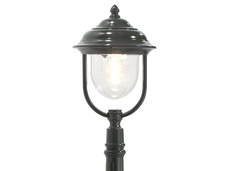 Der Korpus der Laterne außen besteht aus grün lackiertem Aluminium, das klare Acrylglas unterstreicht den Laternen Charakter der Leuchte.