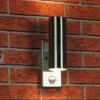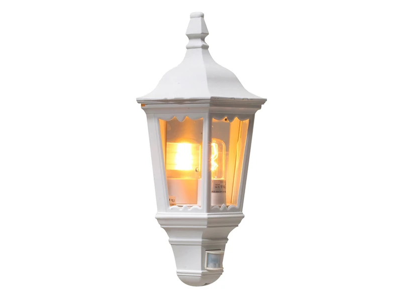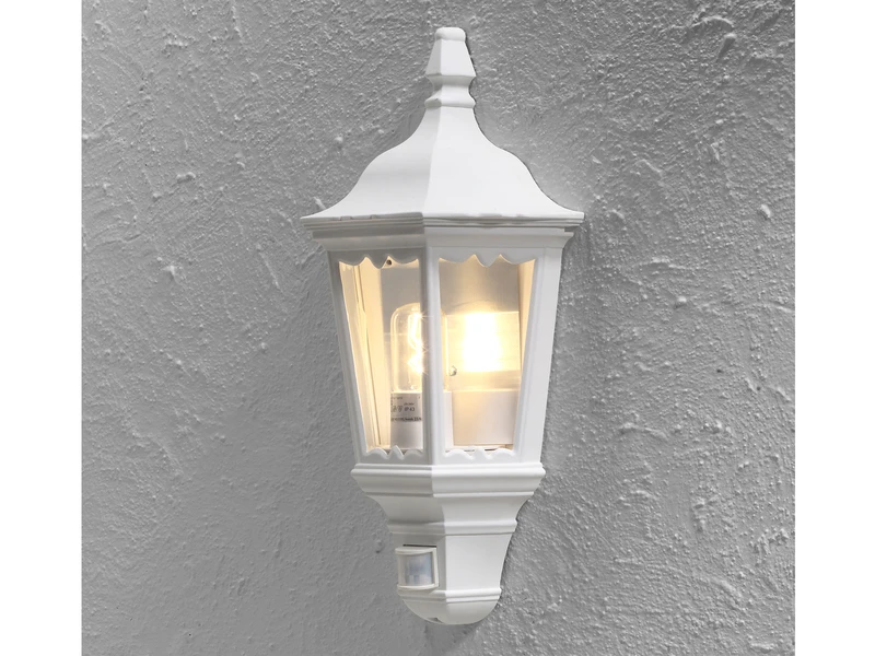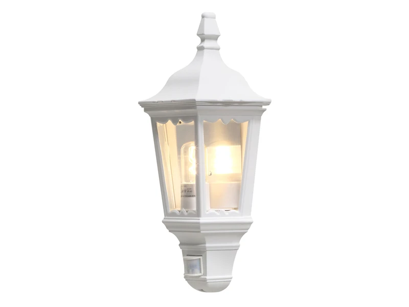 Durch den Bewegungsmelder reagiert sie auf Bewegungen aus max. 8 m Entfernung und erfasst diese in einem Winkel von 180°. Das Zeitintervall ist wählbar von 5 Sekunden bis 8 Minuten.