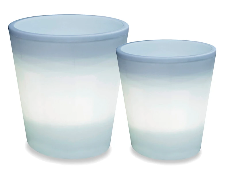Mit diesem 2er-Set erhalten Sie einen beleuchteten Übertopf in Durchmesser 28 cm und einmal in Durchmesser 37 cm.