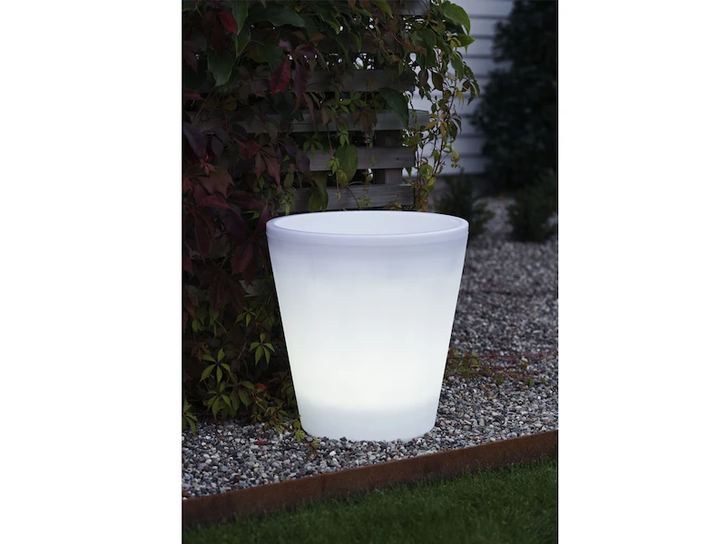 Der beleuchtete Blumentopf lässt sich ideal als zusätzliche Wegeleuchte, zur Akzentbeleuchtung, oder als effektvolle Terrassenbeleuchtung einsetzen.
