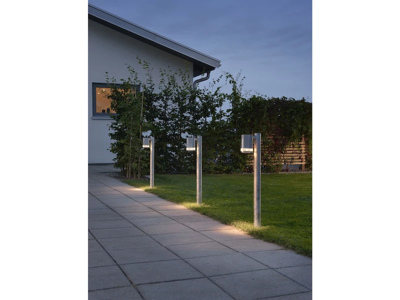 Durch den gebündelten Lichtaustritt nach unten garantiert die Pollerleuchte effiziente Beleuchtung für Gartenwege und auf dem Grundstück.