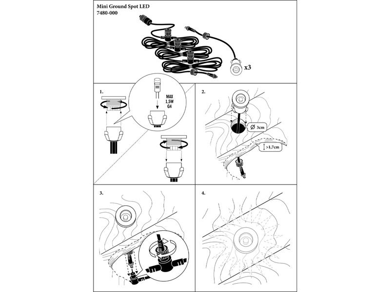 Konstsmide Erweiterungs 3er SET Mini Bodeneinbauspots Edelstahl/Glas Ø3,5cm IP44, G4