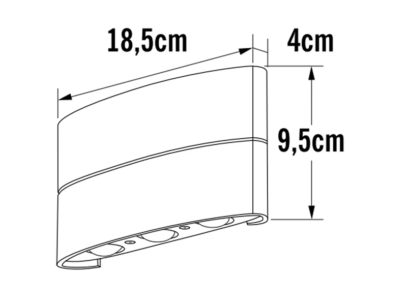 Mit einer Höhe von 9,5 cm sowie einer Breite von 18,5cm und Tiefe von 4cm ist die Fassadenleuchte auch bei der Gartengestaltung sehr gut als dekorative Wegeleuchte geeignet. Die AuĂenleuchte ist mit zwei sechs verbauten Highpower LED Modulen ausgestattet, welche mit einer Leistung von jeweils 1,2 Watt, 400 Lumen und 3000 in WarmweiĂ fĂŒr eine effektive Beleuchtung sorgen. Im Innenraum kommt sie vor allem als zeitgemĂ€Ăe Beleuchtung von Fluren und TreppenhĂ€usern zur Geltung.