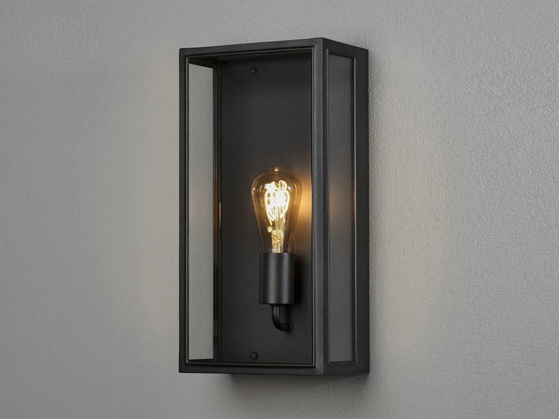 Gefertigt aus Stahl in der Farbgebung Schwarz und aus Klarglas überzeugt die Außenleuchte im modernen Landhausstil durch ihre hochwertige Verarbeitung und ihrem zeitlosen Erscheinungsbild in Laternenoptik.