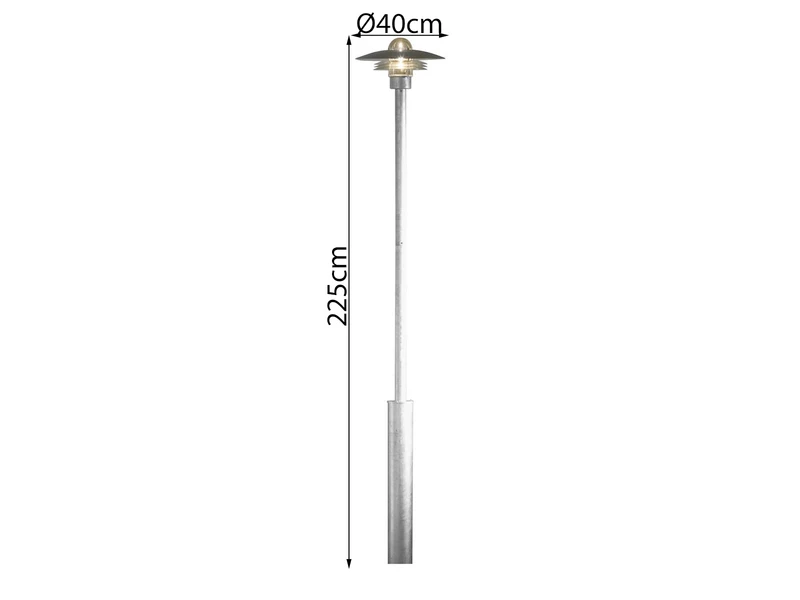 Durch ihre Höhe von 225cm garantiert die Mastleuchte effiziente Beleuchtung auf dem Grundstück und an Wegen.