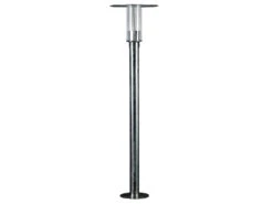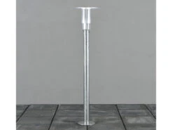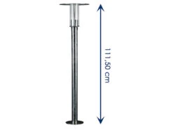 Der schlanke Glasschirm ist mit vier Schrauben an dem Standfuß befestigt, welcher wiederum mittels beigefügtem Pfahl im Boden gesichert wird.