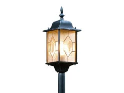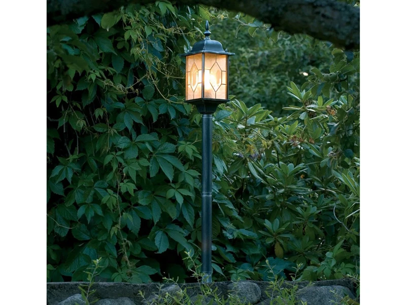 Die Außenleuchte im Landhausstil hat eine Höhe von 131cm und bietet als Terrassenbeleuchtung, Gartenleuchte oder im Eingangsbereich eine optimale Ausleuchtung. Breite und Tiefe betragen jeweils 16cm.