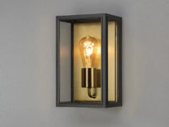 Die Messingfarbene Rückwand sorgt für eine warme Lichtstreuung und macht die Wandleuchte zu einem besonderen Hingucker.