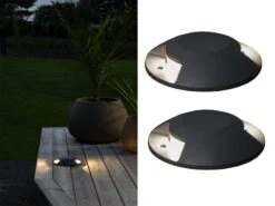 Der runde Bodenstrahler mit 20cm Duchmesser und 4,5cm Höhe erfüllt höchste Ansprüche an Technik, Funktionalität und Design. Der Lichtschein sorgt mit seinen 2 Lichtaustritten für eine sanfte Orientierung, damit man sich im Außenbereich auch nach Einbruch der Dunkelheit noch gut und sicher bewegen kann. Der Spot spendet zuverlässig Licht, wo Sie es benötigen ohne zu blenden.